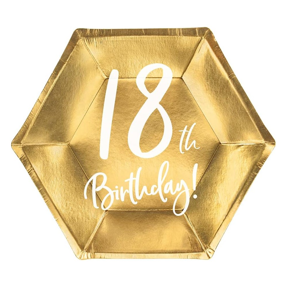 Festeggia i 18 anni con stile grazie a questi splendidi piatti dorati! Perfetti per compleanni importanti, questi piattini sono decorati con la scritta "18 Anni", aggiungendo un tocco di eleganza alla tua tavola. Ideali per servire dolci, snack e torte, sono realizzati in materiale resistente e dal design raffinato, perfetto per feste glamour e indimenticabili. Completa le tue decorazioni con questo dettaglio che unisce praticità e bellezza!