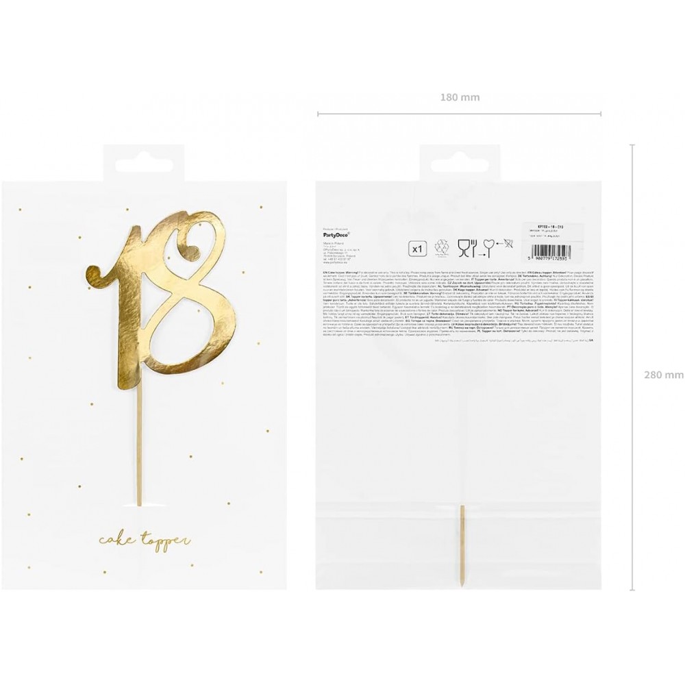 Topper Pick per Torta 18 Anni, Oro,20,5 cm