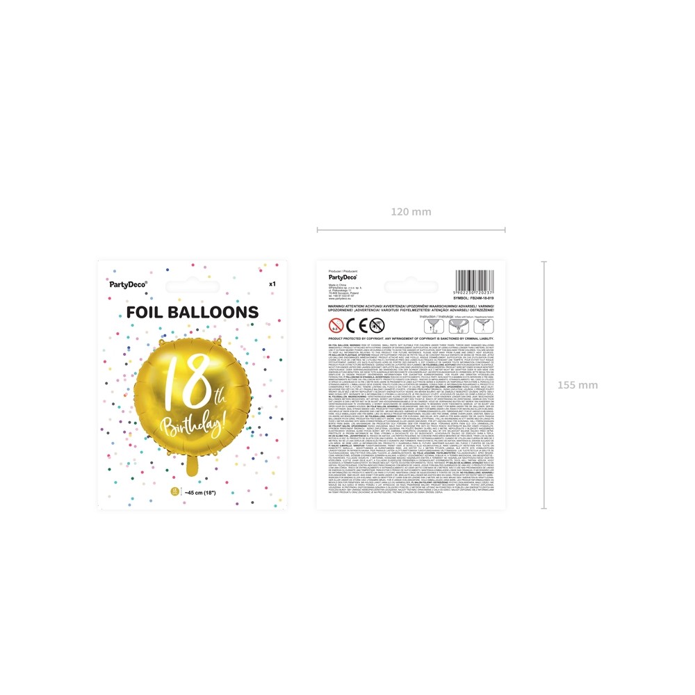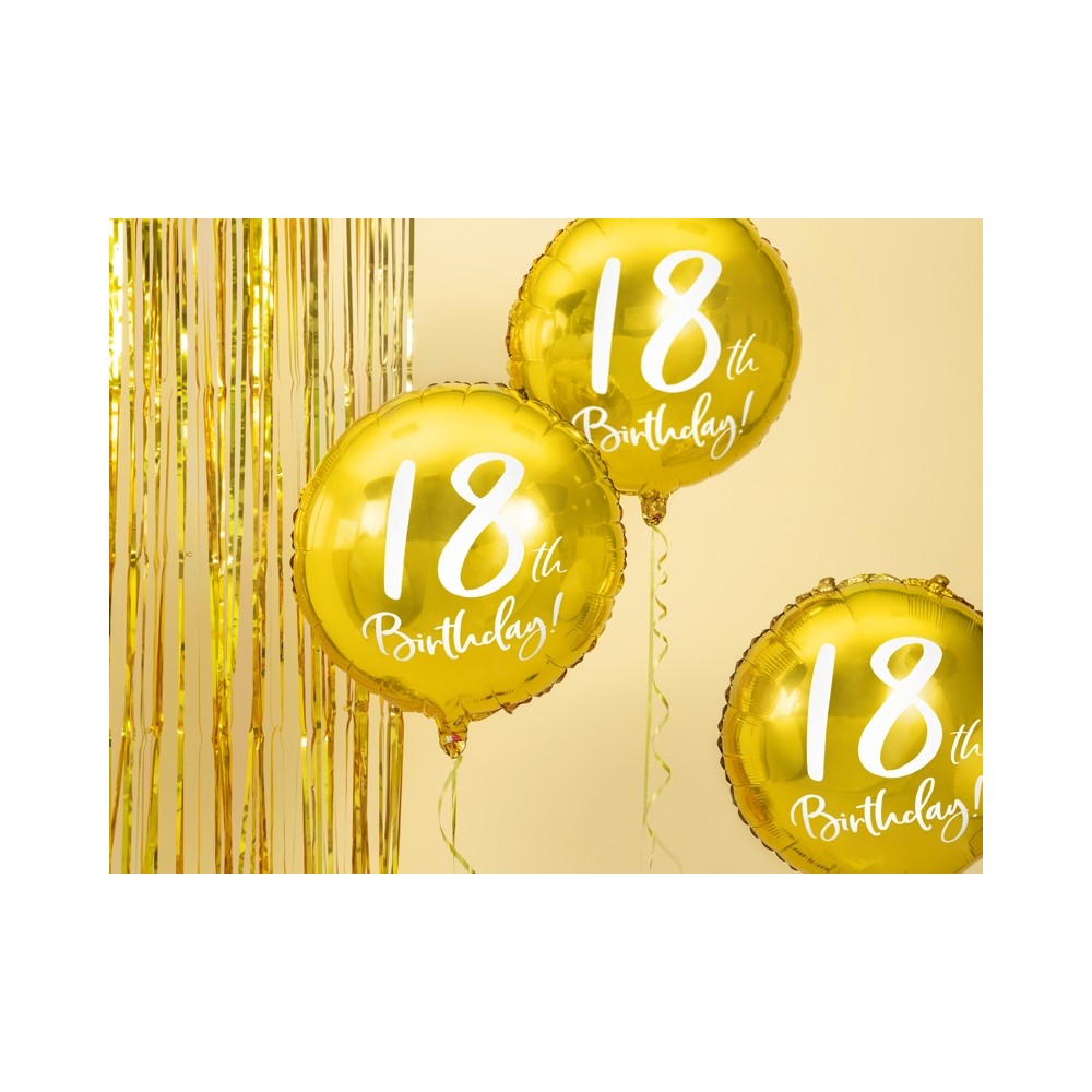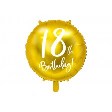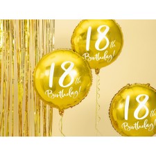 Un elegantissimo foil balloon dorato con scritta "18th Birthday!", la decorazione ideale per festeggiare il 18° compleanno! Si può gonfiare sia ad aria (tramite l'utilizzo di una pompetta) che ad elio.