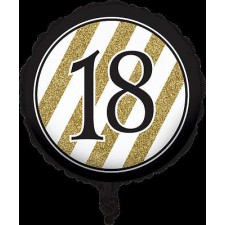 Palloncino in Mylar, ottimo per decorare la propria festa del 18esimo compleanno o quella di un amico, il pallone gonfiabile ad aria o ad elio sarà perfetto per il party dei 18 anni del proprio figlio, il palloncino infatti, viene presentato sotto forma rotondeggiante e di colore bianco, nero ed oro, in maniera tale da creare un addobbo unico e di una certa eleganza. Ideale come decorazione se affiancata a coordinati dello stesso tipo e altri articoli per la festa dello stesso genere e colore, in maniera tale da rendere il proprio evento chic ma soprattutto speciale, visto il giorno solenne.
