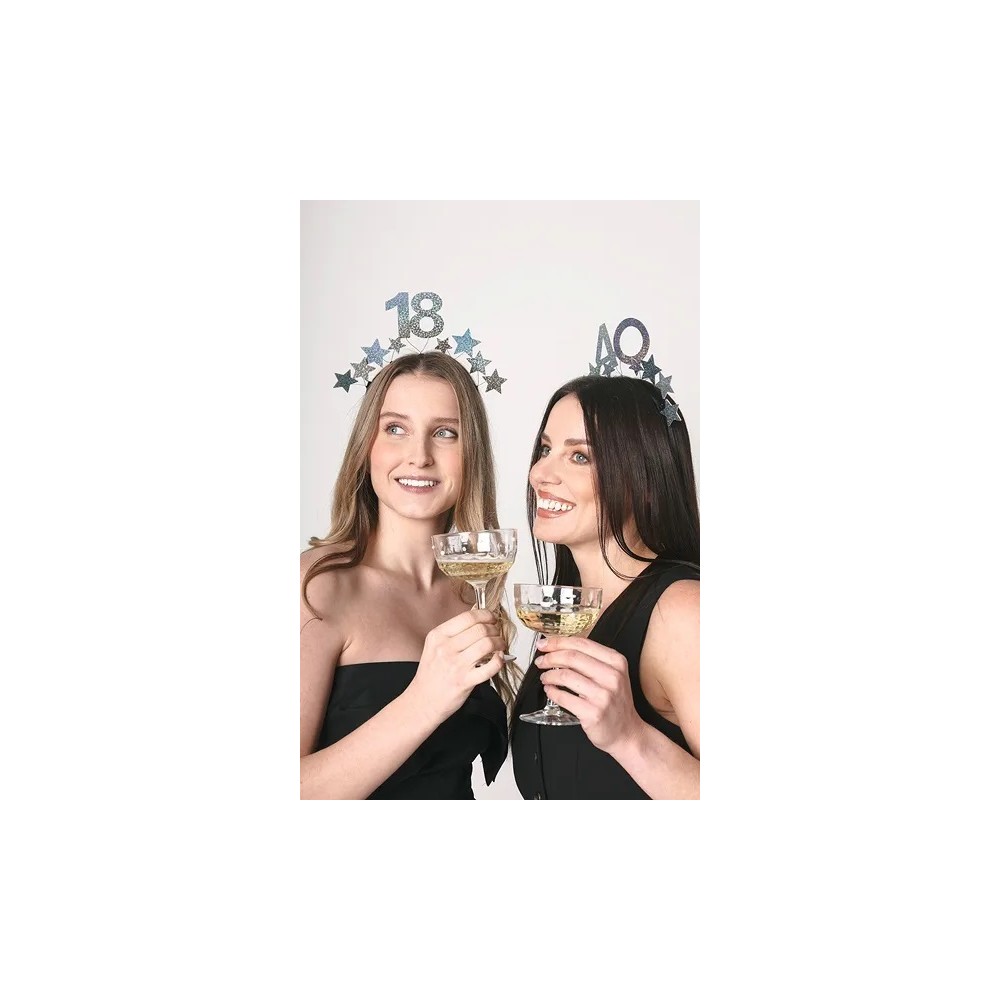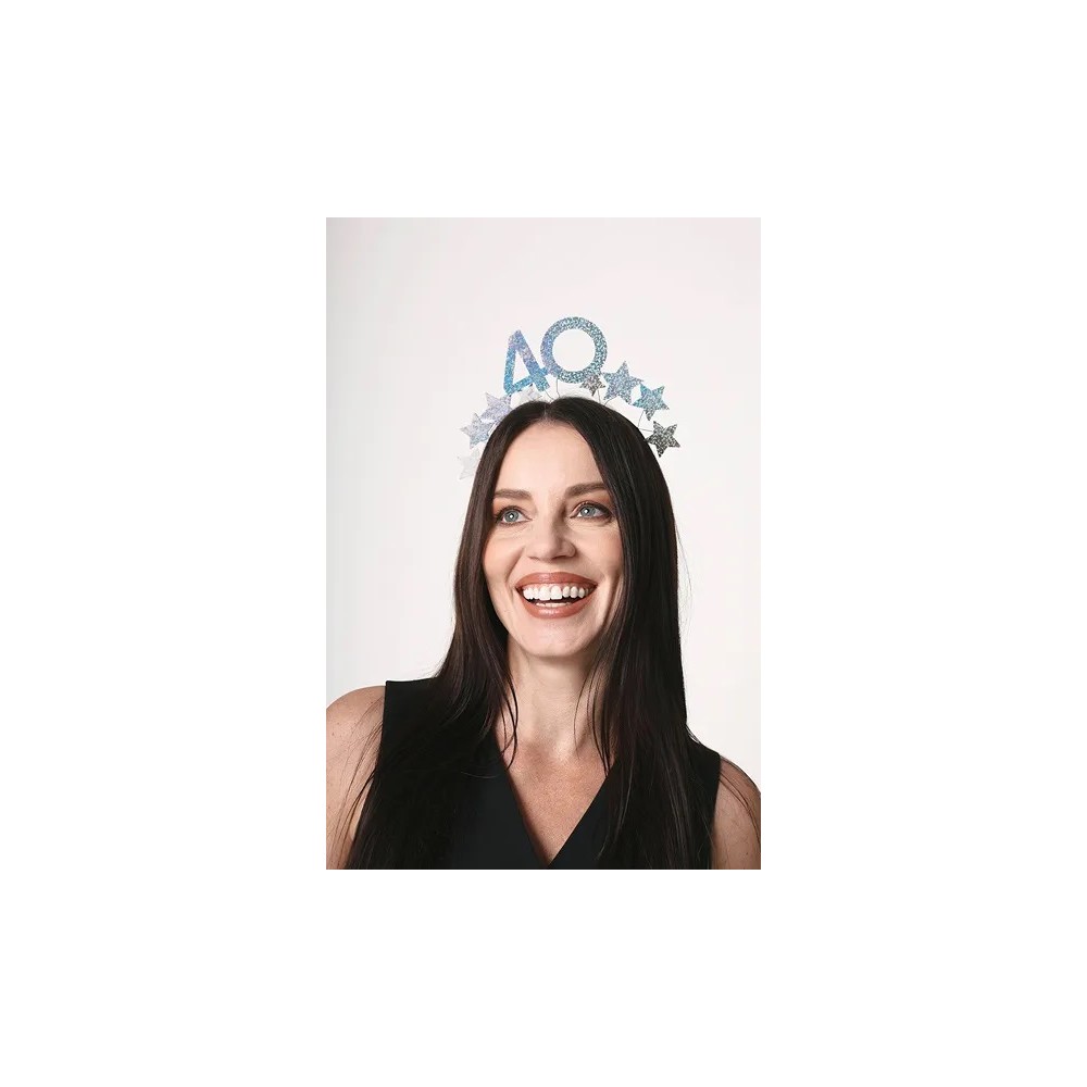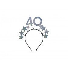 Cerchietto 40 Anni, Glitter e stelline,Argento, 22 x 21,5 cm