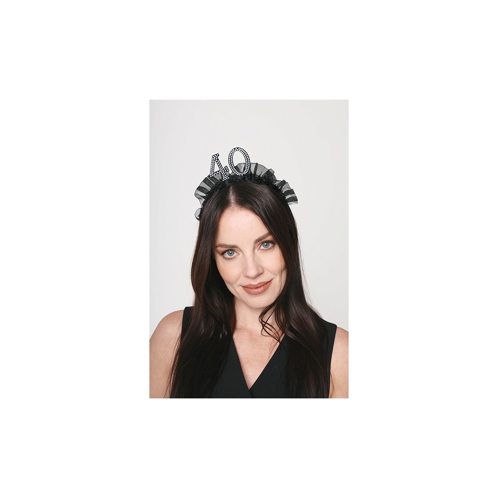 Cerchietto 40 Anni, Stoffa e perline,Nero, 12 x 19,5 cm