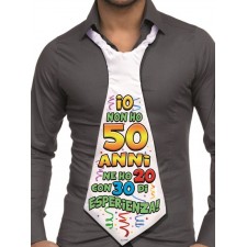 Ottimo accessorio utile nella strepitosa giornata del compleanno 50 anni di un amico o famigliare. Presentato sotto forma di Cravatta, il gadget umoristico sarà l'elemento perfetto da indossare per tutta la durata della celebrazione, in modo tale da rendere il momento del suo cinquantesimo il più divertente e coinvolgente possibile.