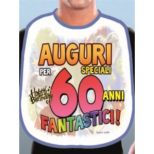 Ottimo accessorio da utilizzare in occasione di una festa dei 60 anni di un proprio famigliare o amico, l'articolo si presenta sotto forma di Bavaglio che mette in evidenza il messaggio di auguri stampato "Oggi festeggiamo i fantastici 60 anni di ...." con uno spazio personalizzabile in cui inserire il nome del festeggiato in questione. Ottimo gadget umoristico ideale per rendere più divertente il party di compleanno a cui si partecipa.