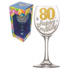 Bicchiere Calice In Vetro 80 anni con brillantini Gadget HumorAltezza 17-18 cm