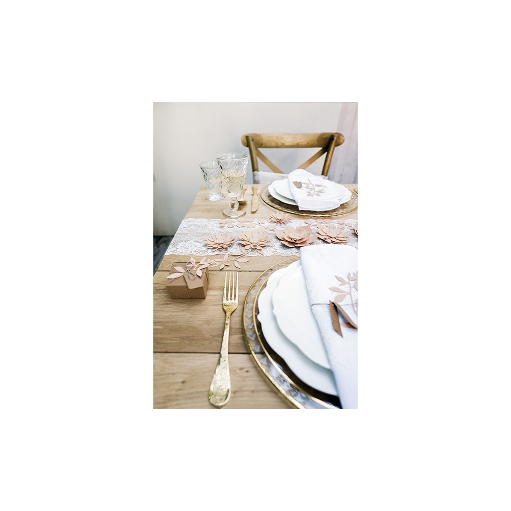 In cartoncino, di colore marrone, ogni scatolina avrà con se un piccolo bigliettino dove poter scrivere un messaggio personalizzato in maniera tale da lasciare un ricordo personale ad ogni invitato presente all'evento.