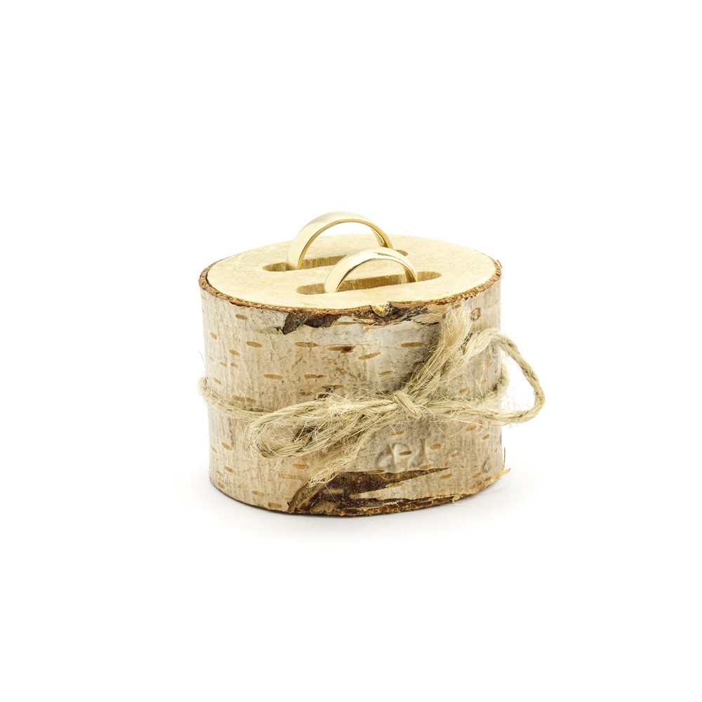 Ideale accessorio presentato come Porta Anelli ottimo per gli amanti del Legno e della semplicità, allo stesso tempo Elegante. Presentato come un ceppo di legno, sulla base sono presenti due scanalature che serviranno come appoggio per le Fedi Nuziali.