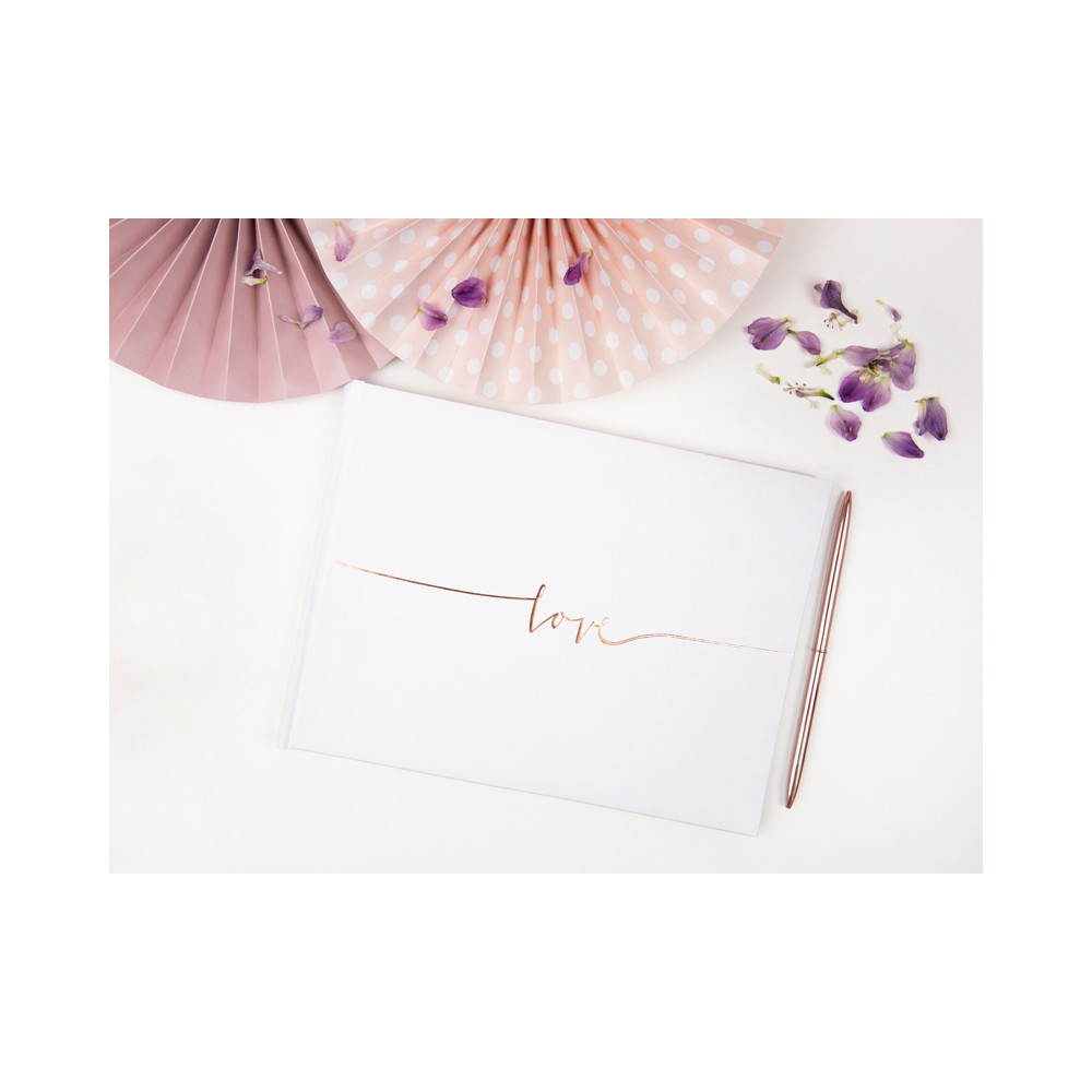 Album bianco con scritta Love in rosa/oro per firme 24 x 18,5 cm