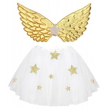 Set travestimento da Angelo con gonna in tulle tutù bianco con stelline oro glitter