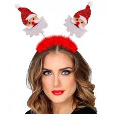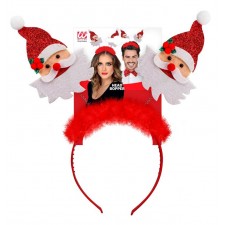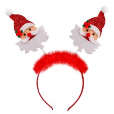 Cerchietto con antenne con faccina babbo natale e boa rosso