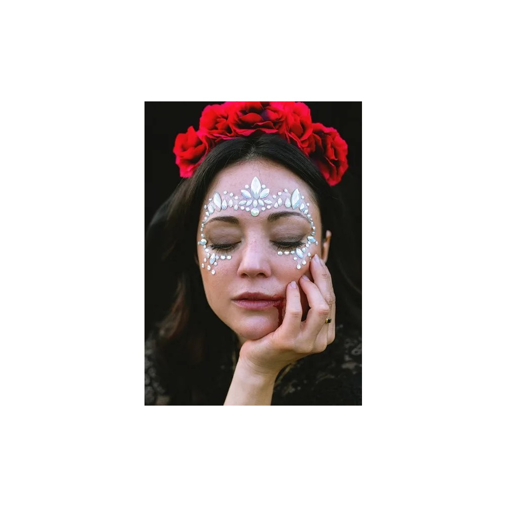 Decorazione per Viso Halloween, Cristalli autoadesivi, luminosi al buio 15 x 9 cm