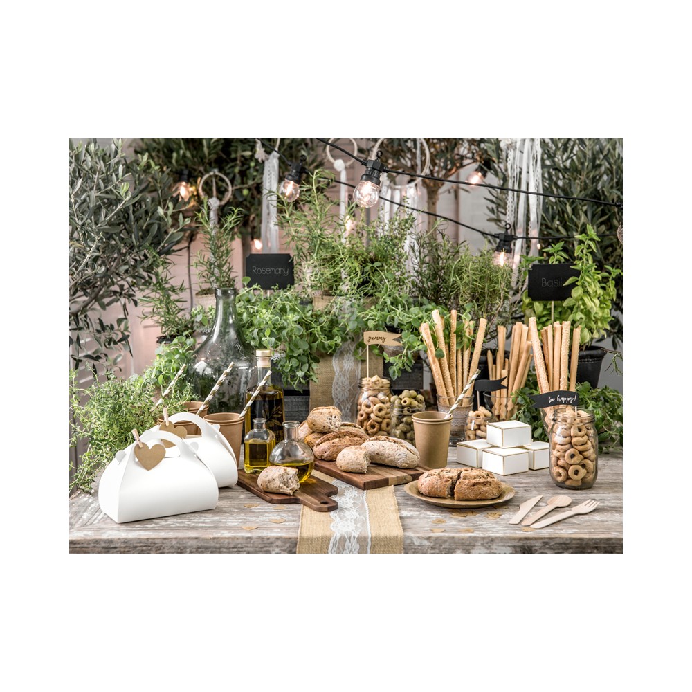 Attraverso questo kit di coperti, potrete decorare le vostre celebrazioni, cerimonie ed eventi con un tocco personalizzato ma soprattutto Eco Friendly, visto il prodotto in legno.