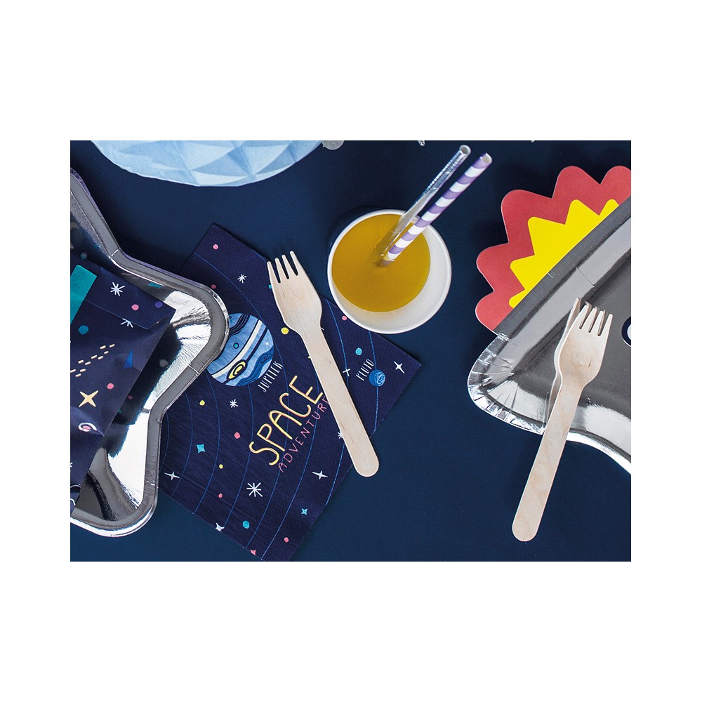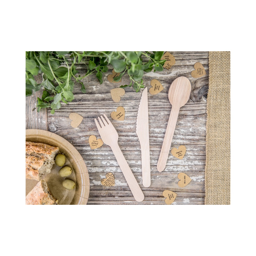 Un set di posate in legno con manico colore legno, dallo stile naturale. Si abbinano perfettamente ai coordinati per la tavola per la festa a tema Pastel Party. Ideali per baby shower e battesimi e qualsiasi altro evento.
