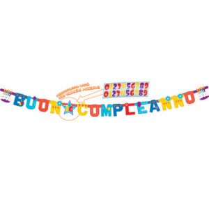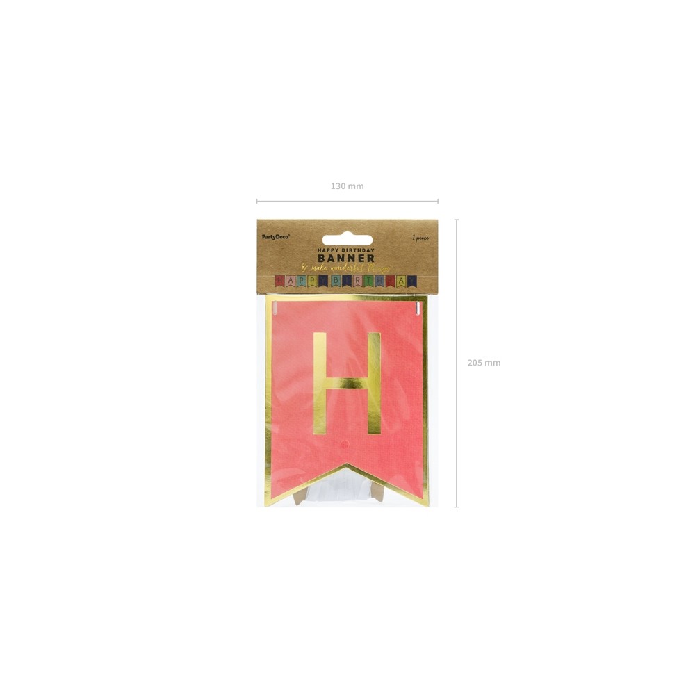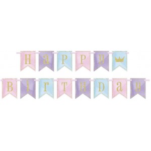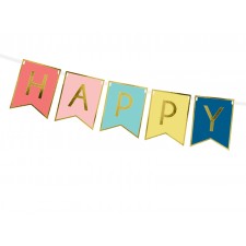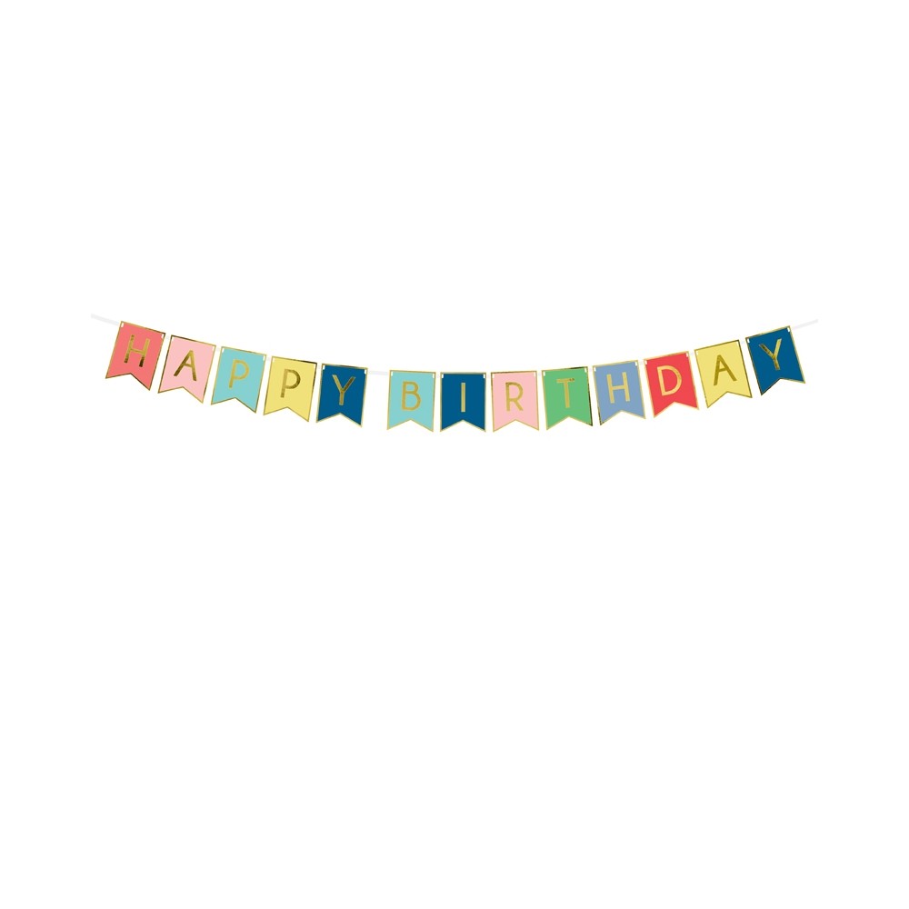 Un coloratissimo festone per decorare la sala della festa di compleanno. All'interno della confezione troverai 2,5 metri di filo bianco e 13 bandierine a coda di rondine con lettere per comporre la frase "Happy Birthday". Una volta assemblato si creerà uno striscione lungo circa 1,75 metri.