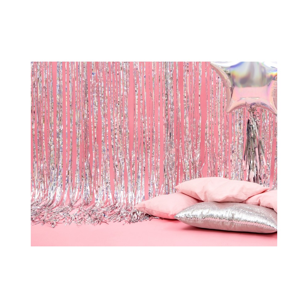 Una tendina a frange olografiche ideale per la decorazione di feste di compleanni per ragazzi o per cerimonie come il matrimonio. Si può usare anche per creare un ottimo sfondo per le tue fotografie.