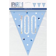 Striscione "100° Compleanno" 2,7 m Argento e Blu per Compleanno