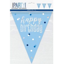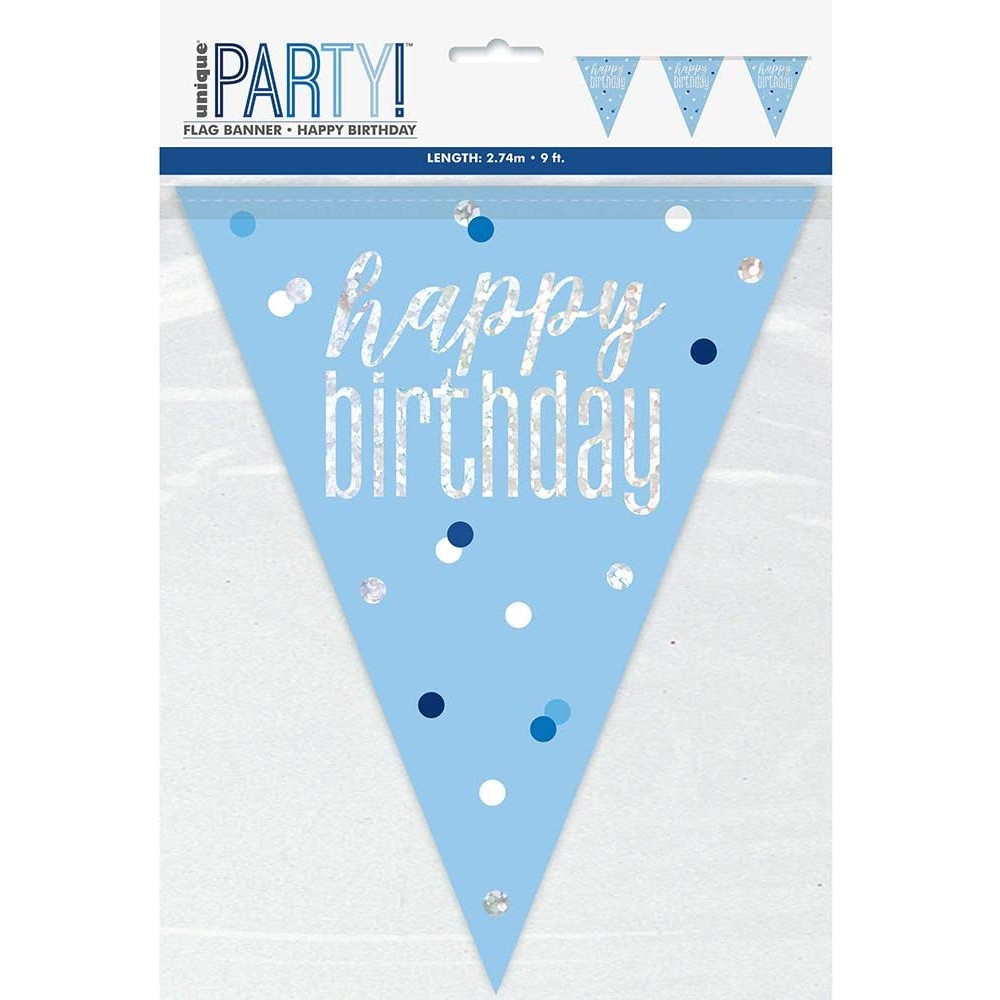 Striscione "Happy Birthday" 2,7 m Argento e Blu per Compleanno