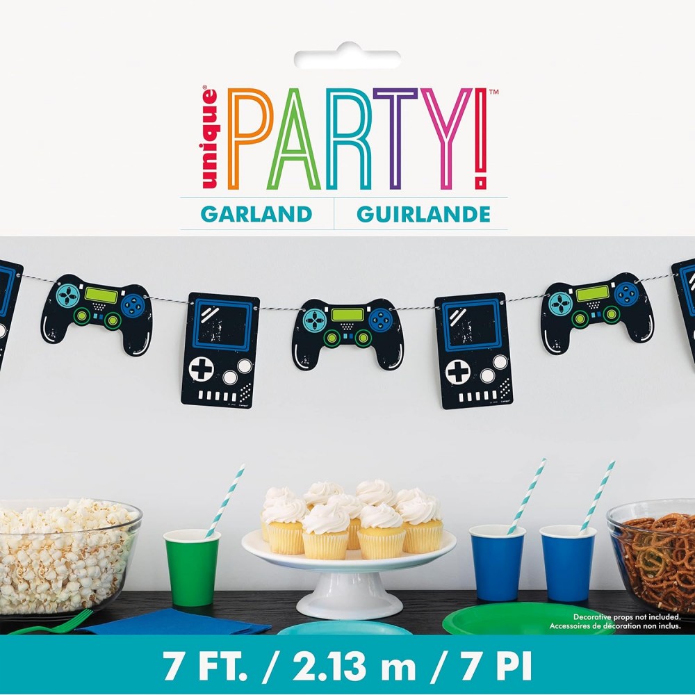 Migliora l'arredamento della tua festa con questa ghirlanda di compleanno per giocatori, in carta. Questa ghirlanda da 2,13 metri mostra controller di gioco super fantastici, perfetti per una festa di compleanno a tema videogiochi. Basta appendere la ghirlanda sulla mensola del camino o lungo la parte anteriore del tavolo della festa, per portare il tema del tuo giocatore al livello successivo.