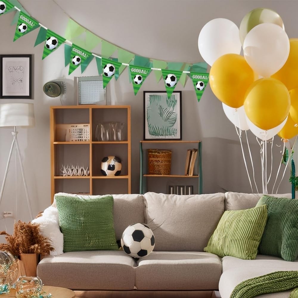Segna un goal per la tua festa con questo striscione per festa di calcio! Caratterizzato da un design sportivo da calcio, questo striscione con bandierine aggiungerà il tocco perfetto alla tua festa di compleanno a tema calcio. Appendi questo striscione a qualsiasi parete o stendilo lungo una recinzione all'esterno.