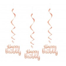 Goditi queste bellissime decorazioni per feste con questi pendenti "Happy Birthday"rosa gold. Questo bellissimo prodotto presenta ritagli di carta. Questi vortici appesi sono perfetti per festeggiare divertenti feste di compleanno. Questo prodotto è realizzato in carta metallica e resistente, facili da montare, possono essere conservati e riutilizzati.