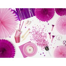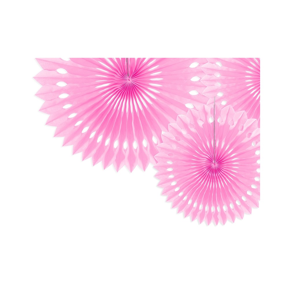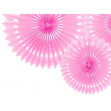 Queste graziose decorazioni in tessuto aggiungono un tocco di raffinata eleganza all'allestimento della tua giornata o occasione speciale. Ogni confezione contiene 3 ventagli rosa di dimensioni diverse (Ø 20 cm, 25cm e 30 cm).