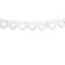 Festone striscione di Cuori Bianchi in Carta misura 13 cm x 3 m