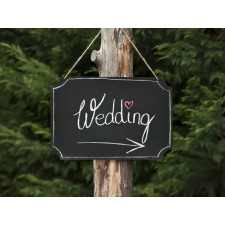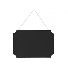 Ottimo accessorio per arricchire il proprio party, grazie a questa lavagna potrete dare segnali ed indicazioni agli invitati nel caso ci sia un percorso da seguire per arrivare alla location scelta per festeggiare l'evento in questione o anche per nominare un area precisa dove si svolgeranno attività ricreative post festa. La lavagna si presenta di colore nero, in carta spessa e grazie ad uno spago in iuta sarà possibile appenderla dove meglio si crede. All'interno della confezione, presenti anche due gessi dei colori bianco e rosso in maniera tale da personalizzare le scritte sulla lavagnetta. Ideale per allestire un matrimonio, una comunione, una cresima o qualsiasi tipo di party a tema.