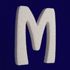 Lettera M in polistirolo per decorazione. Madreperla glitterato, 12 x 9 cm.