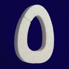 Lettera O in polistirolo per decorazione. Madreperla glitterato, 12 x 9 cm.