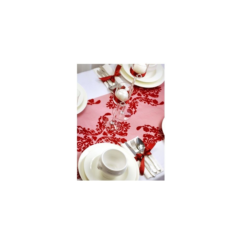 rotola Organza runner Tessuto Stampato Addobbi Decorazioni bordò, rosso