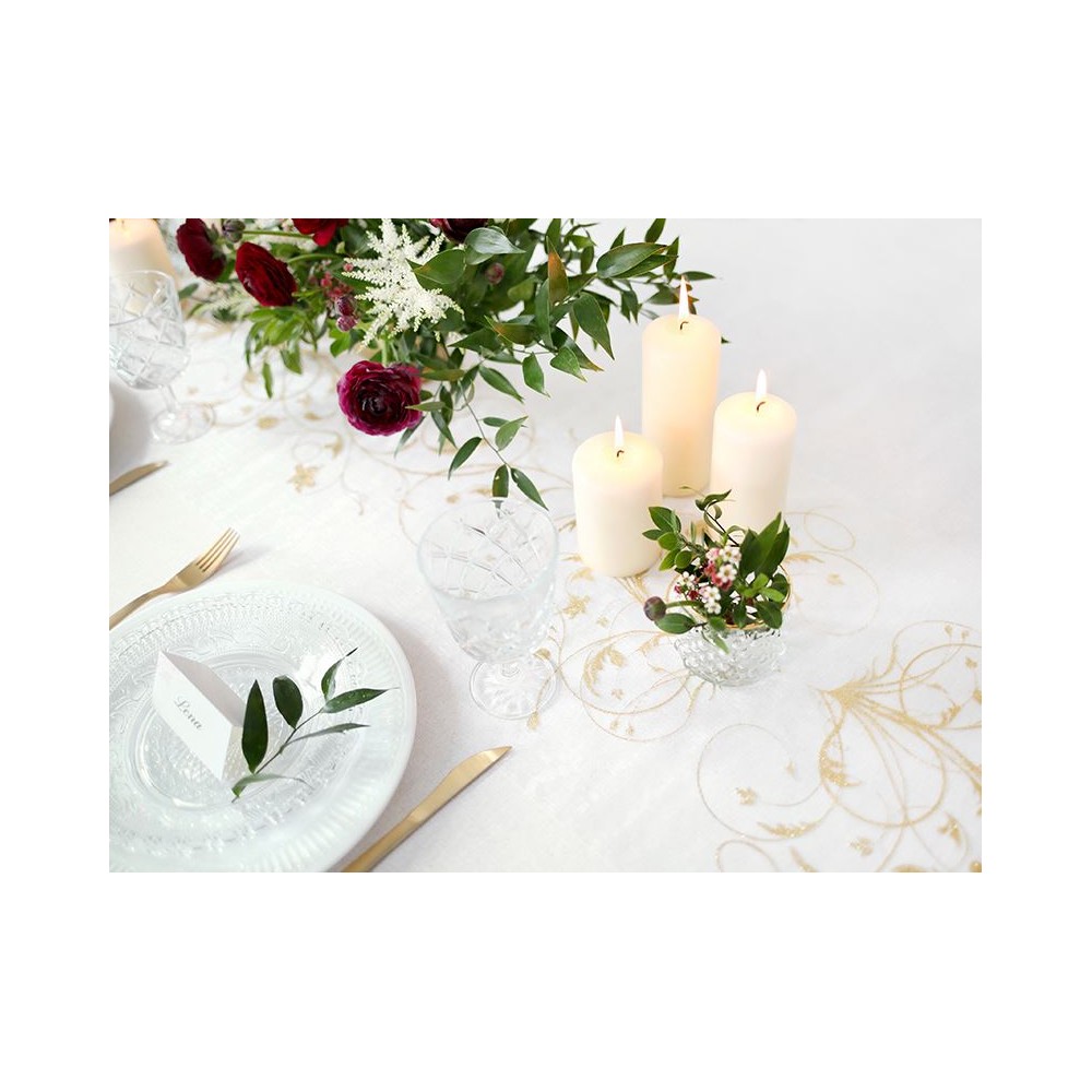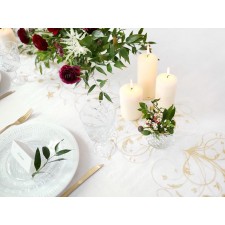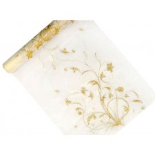 Ottimo addobbo per rendere il proprio evento migliore, grazie a questo rotolo di organza potrete dare un tocco colorato e allo stesso tempo raffinato al vostro party, il rotolo, presentato di colore bianco ed oro, vede stampata una decorazione in simil pizzo in maniera tale da esser utilizzato per favorire l'eleganza dell'evento. Utile per qualsiasi tipo di festa, sarà ottimo come decorazione da tavola in vista di un pranzo o di una cena importante.