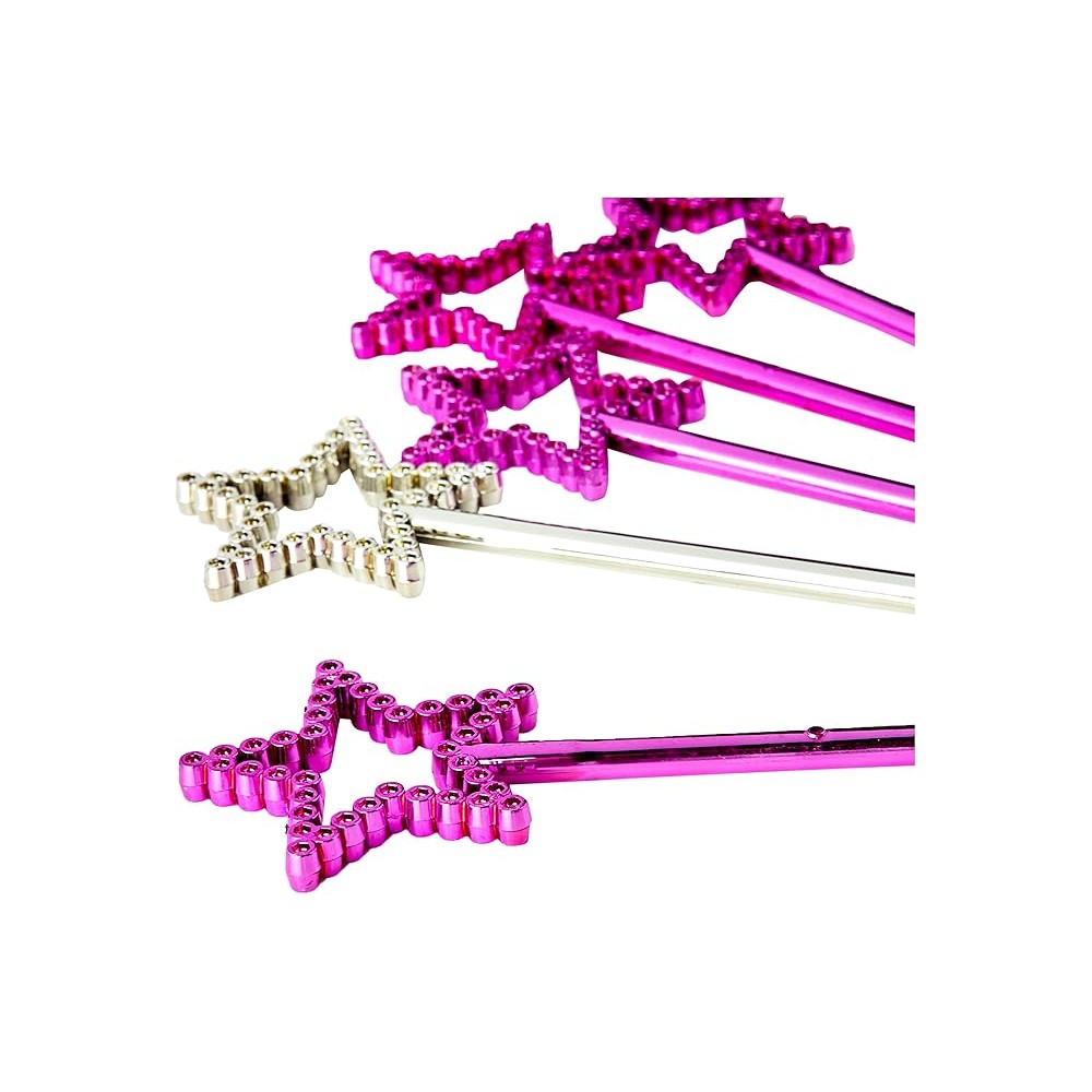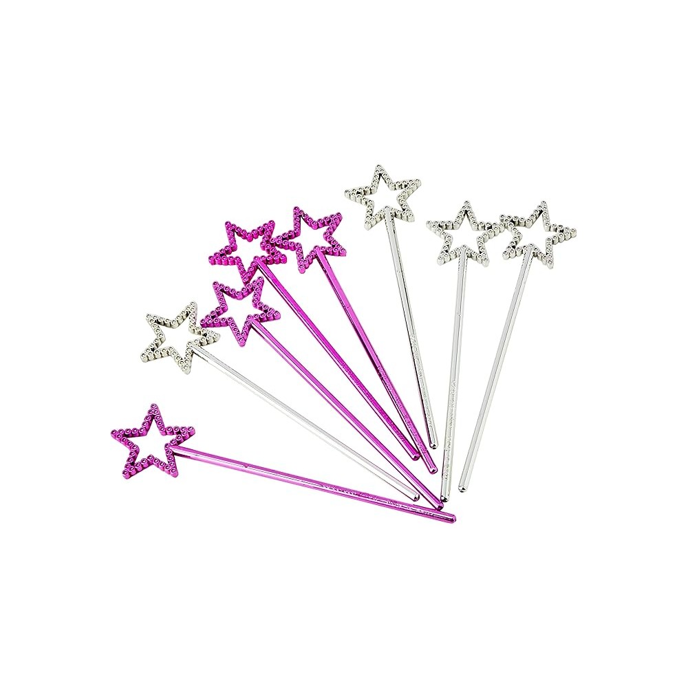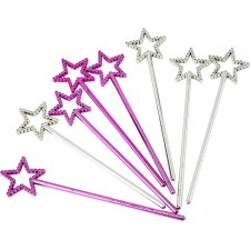 Bacchette Magiche a forma di Stelline,Argento e Fucsia, 8 pz.