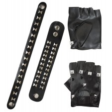 Comprende: 1 paio di guanti borchiati, 2 bracciali borchiati.
