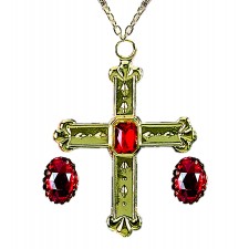 Completa il tuo travestimento da cardinale grazie a questa set di gioielli composto da 2 anelli con gemma rossa e una collana dorata con crocifisso! Questo è l'accessorio perfetto per molti costumi a tema religioso, in particolare cardinale, vescovo, papa o San Nicola. Perfetto per Carnevale, feste religiose e party a tema.