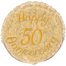 Palloncino in Mylar, oro, con stampa "Happpy 50th Anniversary", ideale per la celebrazione dell'anniversario di nozze e matrimonio. Il palloncino, ideale per la decorazione di un party sia all'interno che all'esterno sarà perfetto per arricchire la festa o la cerimonia dei vostri famigliari o dei vostri amici. Il pallone, gonfiabile ad aria o ad elio, presenterà un materiale molto resistente.