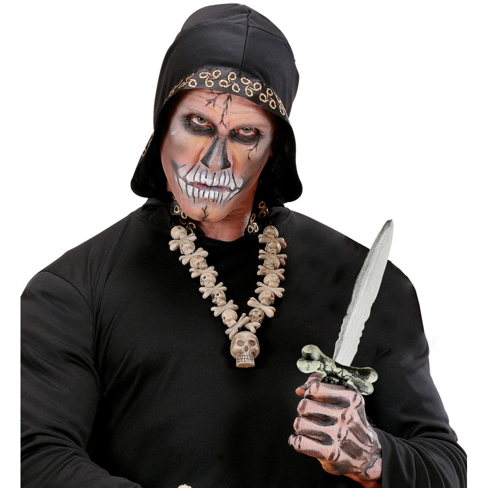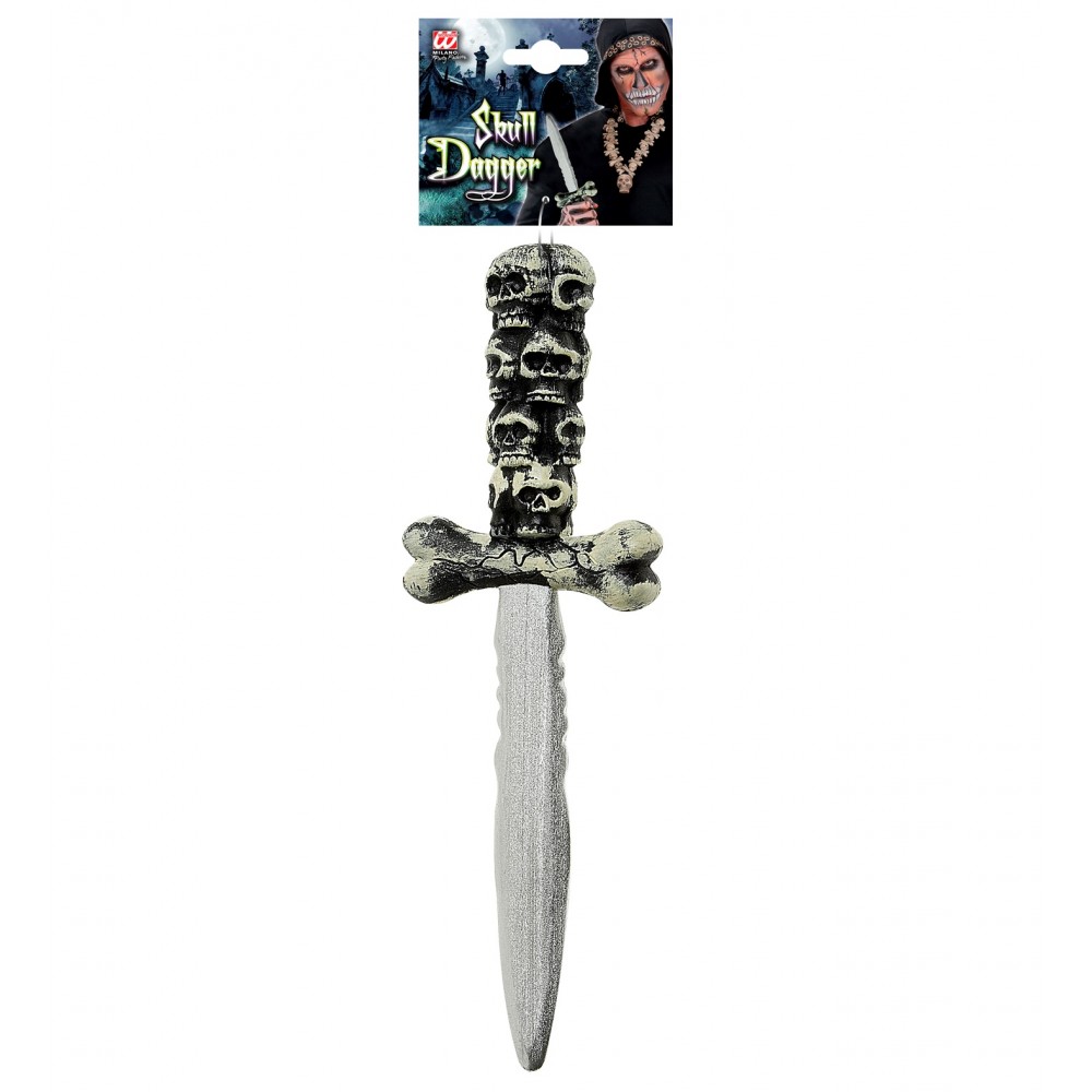 Cerchi un accessorio da film horror per completare il tuo costume di Halloween? Il coltello pugnale con teschi è sicuramente l'accessorio da travestimento ideale! Completa i tuoi costumi da assassino psicopatico, killer, macellaio, pirata, ecc con questa arma giocattolo dal realistico effetto horror .