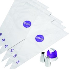 Il kit comprende : 2 beccucci (1M e 1A) , 1 adattatore per 3 sacchi, 6 Tasche da pasticciere monouso.