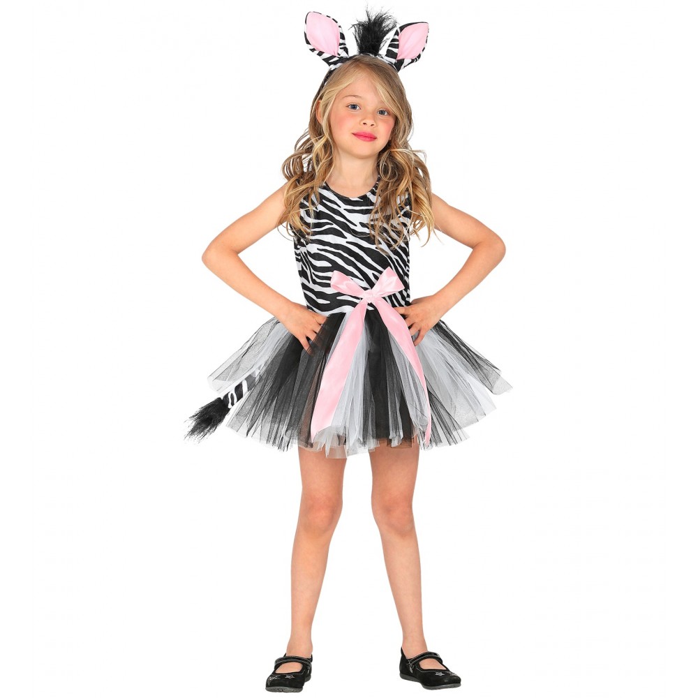 Costume Zebra Bambina per Feste a Tema, Carnevale, Taglia 5-7 anni, 128cm