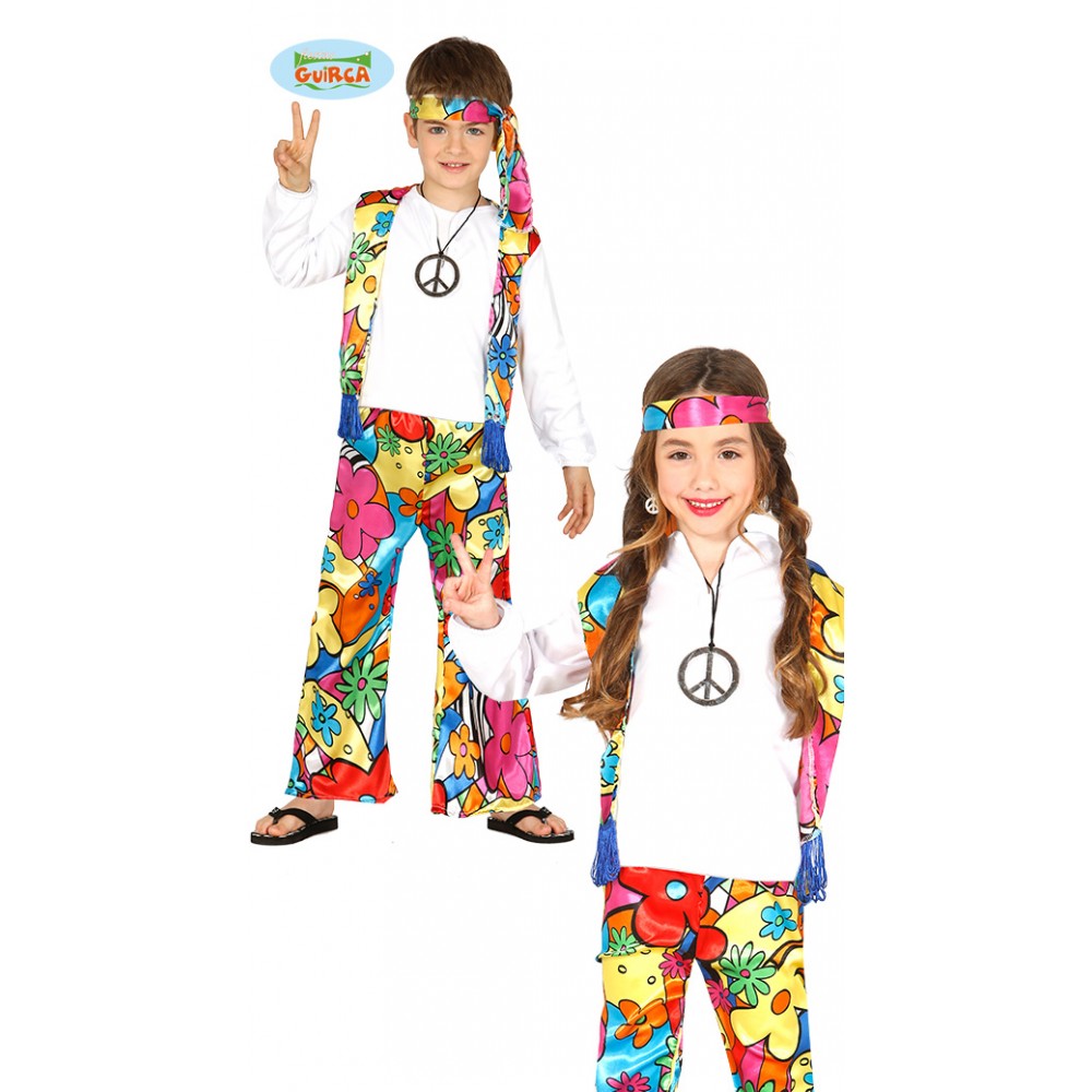 Costume Hippie Bimbo/Bimba 7/9 Anni Figlio Dei Fiori Anni '70 Travestimento Carnevale Feste
