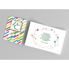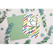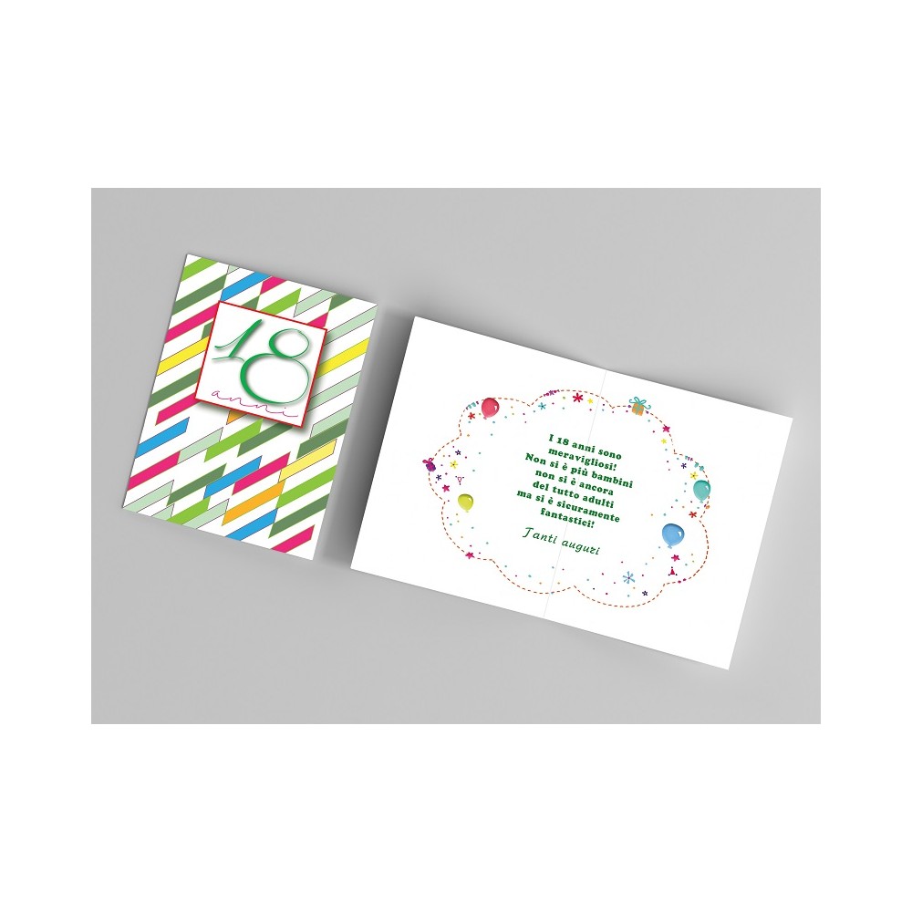Ideale accessorio di cartoleria confezionato singolarmente da utilizzare nel giorno del 18° Compleanno di un famigliare, un amico o un collega, il prodotto, in cartoncino biodegradabile e completamente Made in Italy, viene presentato con una stampa serigrafica in rilievo della cifra 18 e all'interno del biglietto, troveremo il messaggio di auguri che cita "I 18 anni sono meravigliosi! Non si è più bambini non si è ancora del tutto adulti ma si è sicuramente fantastici! Tanti Auguri!" personalizzabile andando a scrivere il nome dei festeggiati. Ideale oggetto prodotto artigianalmente da abbinare eventualmente ad un regalo o a un mazzo di fiori.