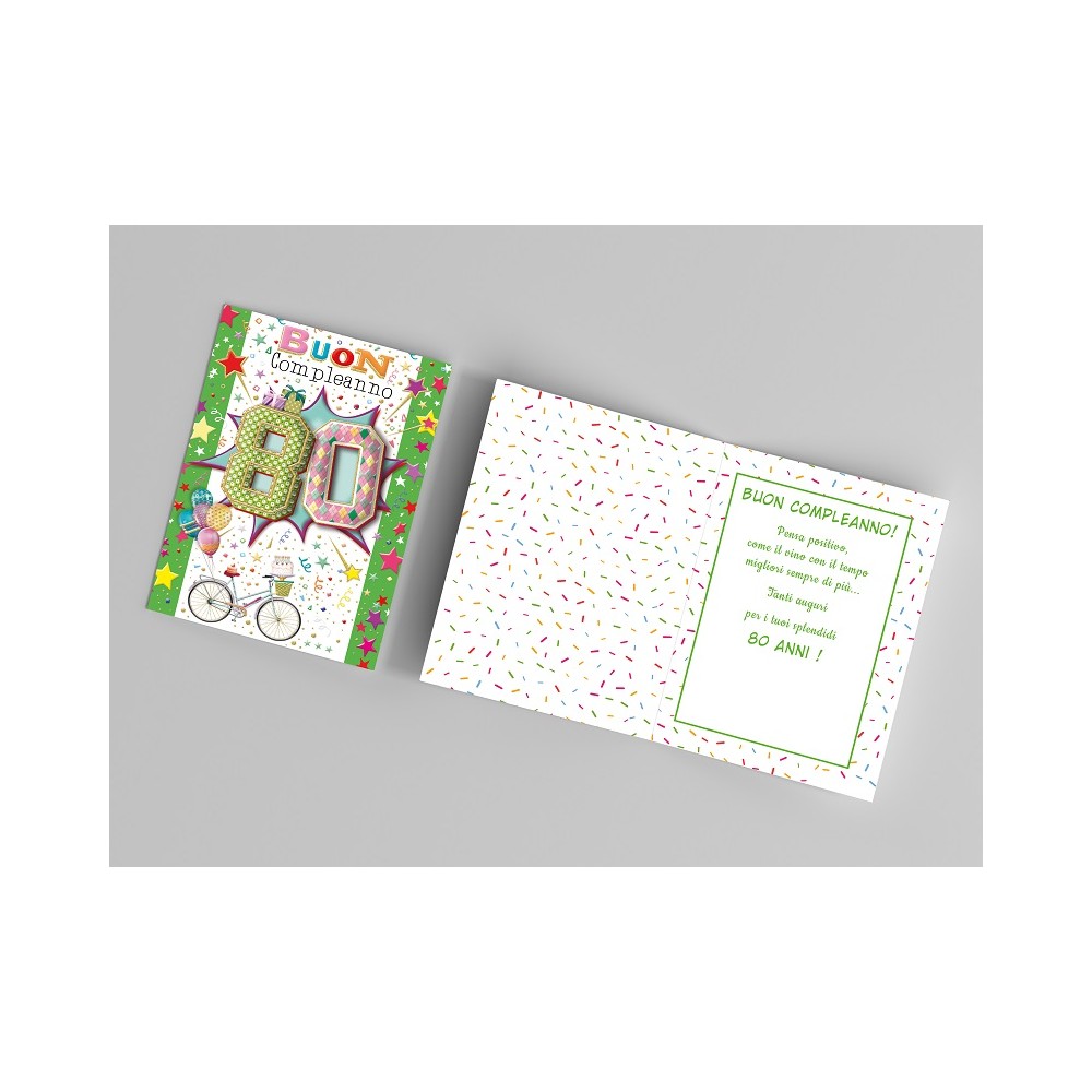 Biglietto "80° Compleanno" ottanta anni con busta