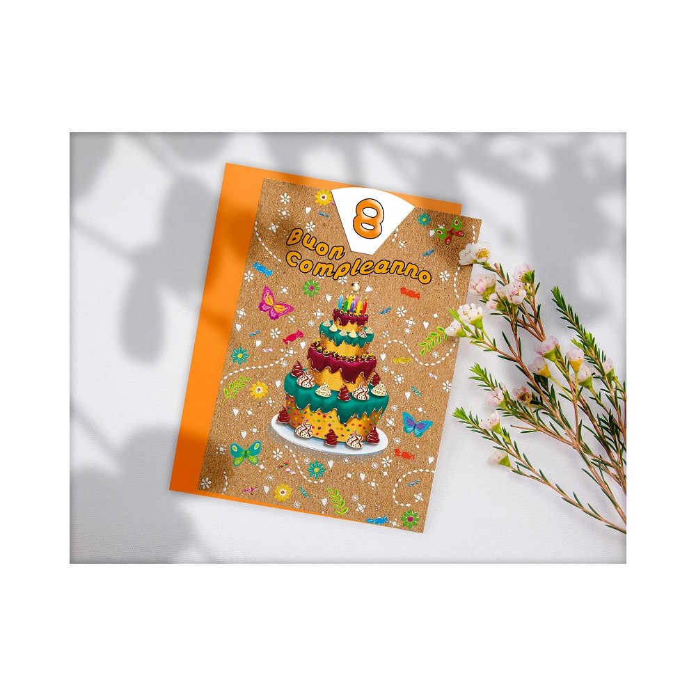 Biglietto "Buon Compleanno" torta con busta