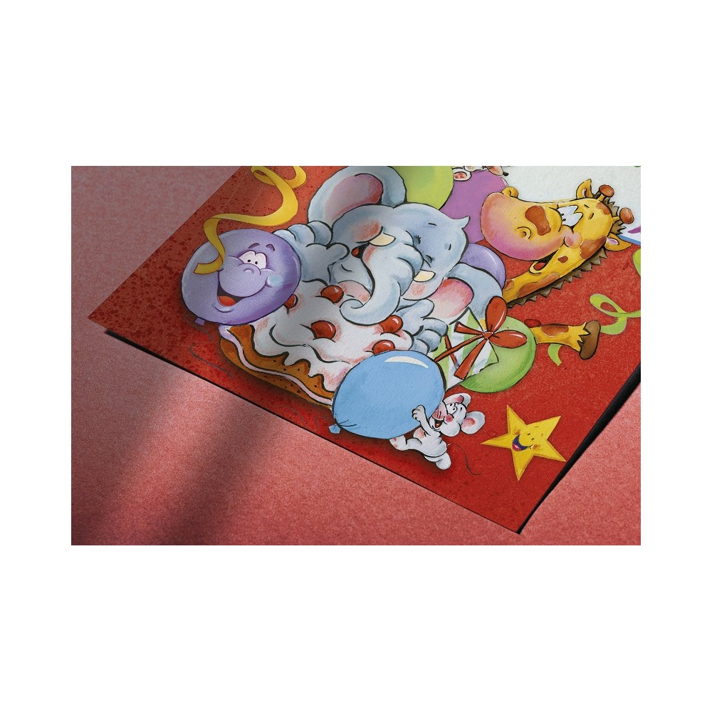 Ideale accessorio di cartoleria confezionato singolarmente da utilizzare nel giorno del Compleanno di un famigliare, un amico o un collega, il prodotto, in cartoncino biodegradabile e completamente Made in Italy, viene presentato con una stampa serigrafica in rilievo di un Elefante ed altri animali accompagnate dalla scritta "Buon Compleanno" e all'interno del biglietto, troveremo il messaggio di auguri che cita "Per il tuo compleanno ti auguro di ricevere tanti regali. Tanti cari auguri per un giorno veramente speciale" personalizzabile andando a scrivere il nome dei festeggiati. Ideale oggetto prodotto artigianalmente da abbinare eventualmente ad un regalo o a un mazzo di fiori.