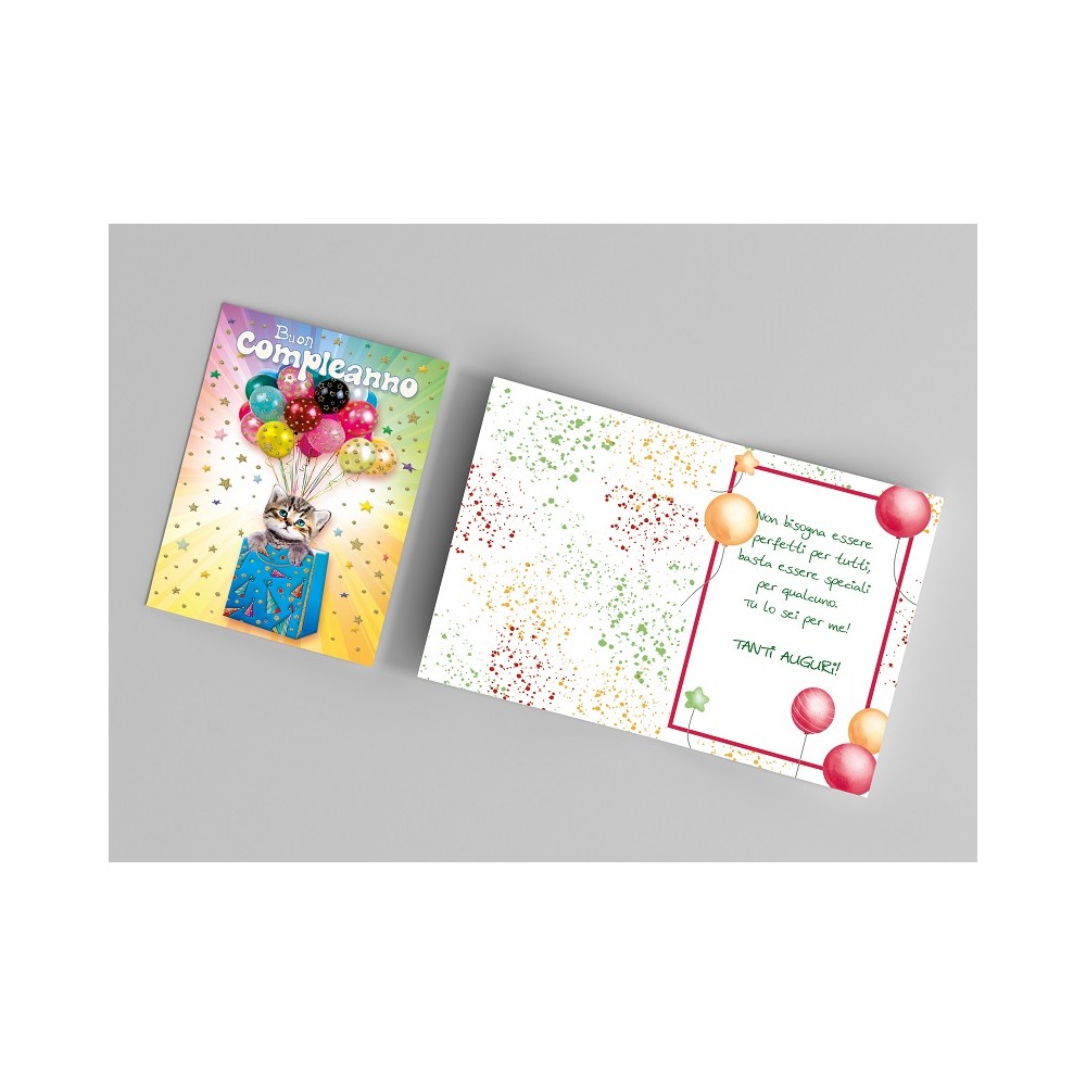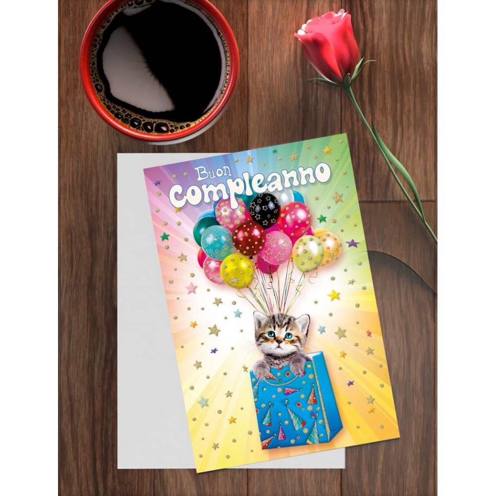 Biglietto "Buon Compleanno" con busta "Gattino e Palloncini"