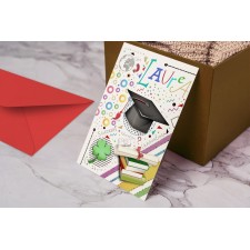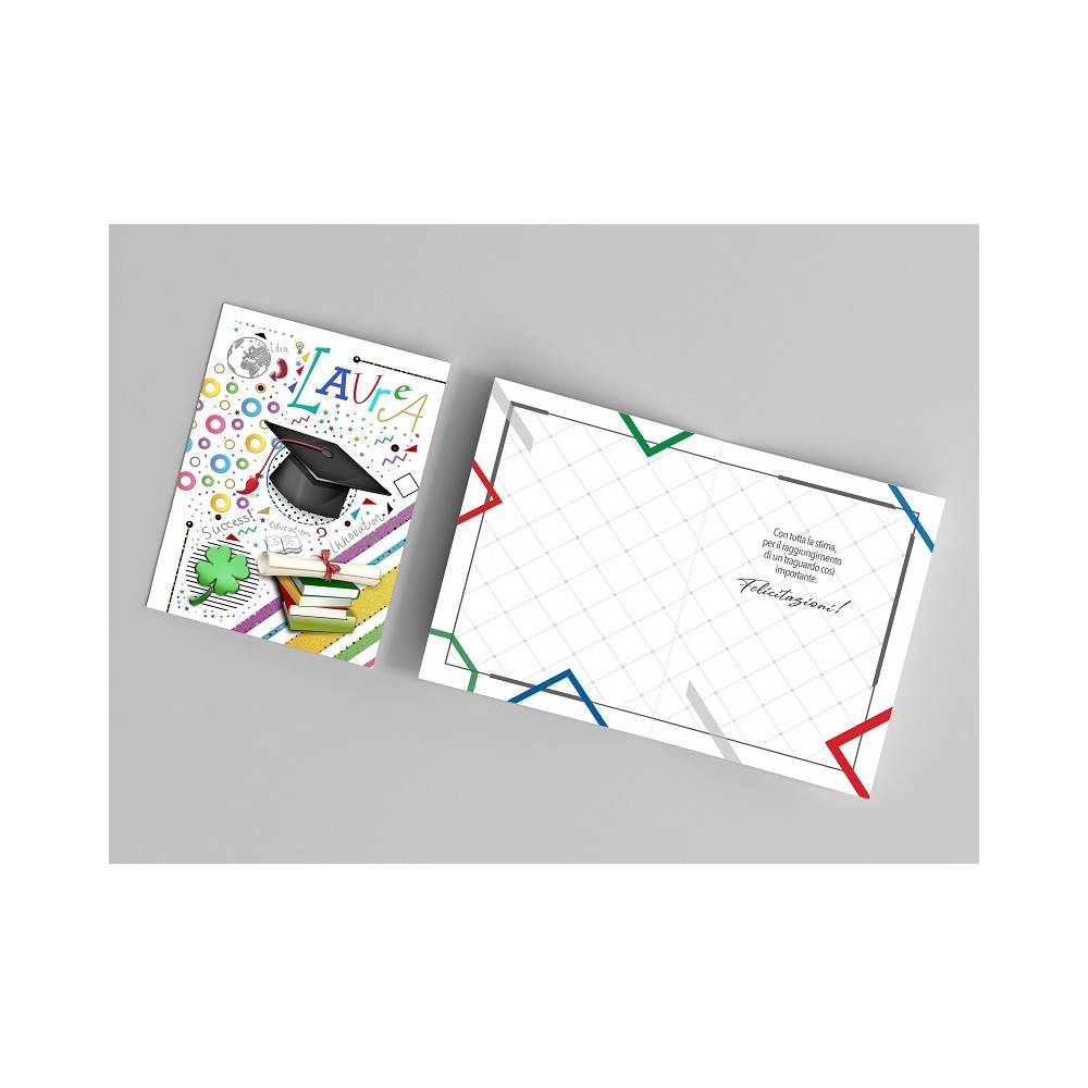 Ideale accessorio di cartoleria confezionato singolarmente da utilizzare nel giorno della Laurea di un famigliare, un amico o un collega, il prodotto, in cartoncino biodegradabile e completamente Made in Italy, viene presentato con una stampa serigrafica in rilievo di un Tocco di Laurea e all'interno del biglietto, troveremo il messaggio di auguri che cita "Con tutta la stima, per il raggiungimento di un traguardo cosi importante" personalizzabile andando a scrivere il nome del festeggiato. Ideale oggetto prodotto artigianalmente da abbinare eventualmente ad un regalo o a un mazzo di fiori (vista la stampa).