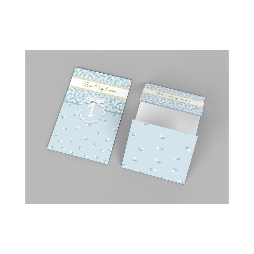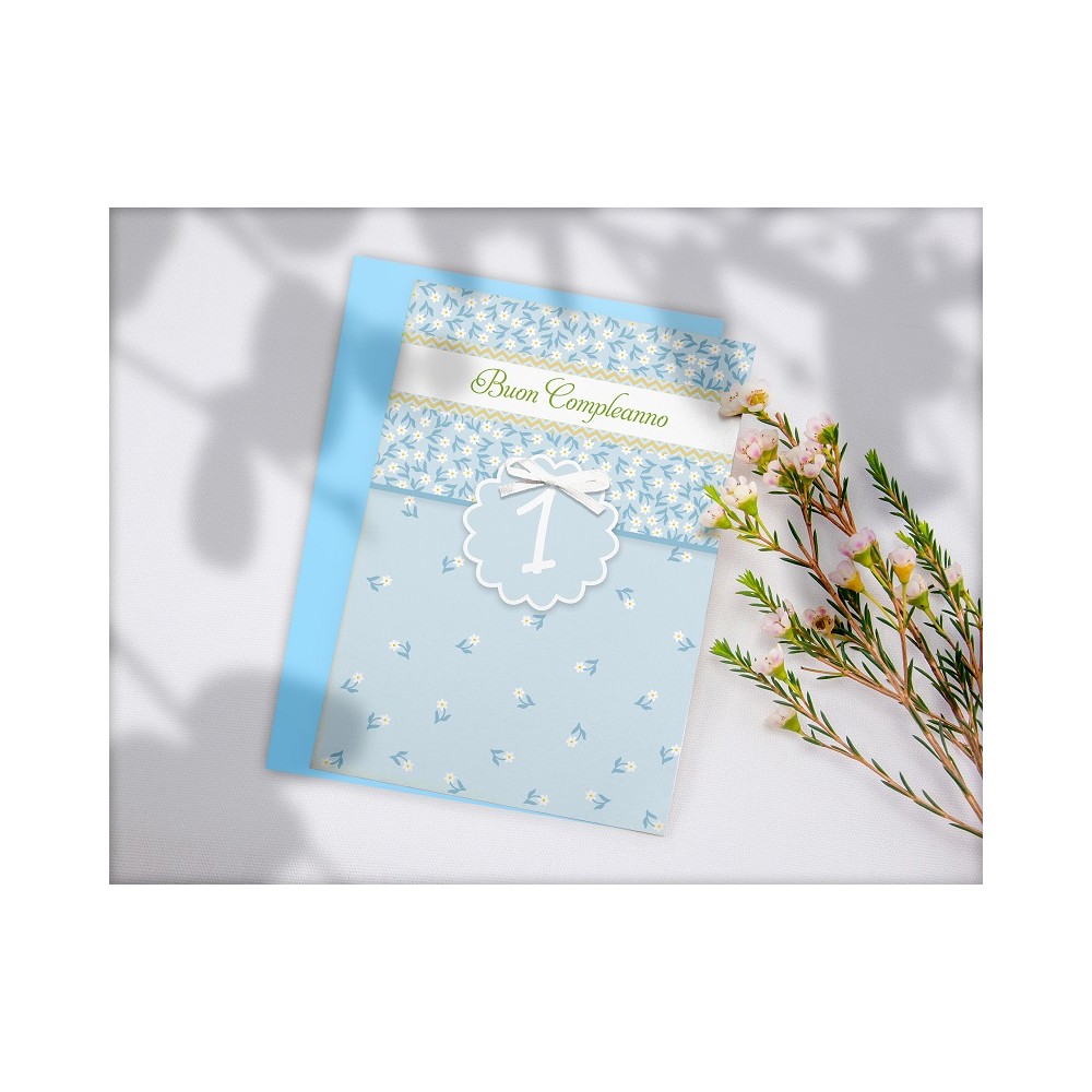 Biglietto "Primo Compleanno" 1 anno azzurro con busta