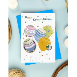 Ideale accessorio di cartoleria confezionato singolarmente da utilizzare nel giorno del Primo Compleanno di un famigliare, un amico o un collega, il prodotto, in cartoncino biodegradabile e completamente Made in Italy, viene presentato con una stampa serigrafica in rilievo con scritto "Tanti Auguri per il tuo Compleanno" e all'interno del biglietto, sarà perfetto personalizzare il tutto andando a scrivere il nome dei festeggiati. Ideale oggetto prodotto artigianalmente da abbinare eventualmente ad un regalo o a un mazzo di fiori.
