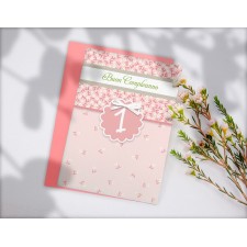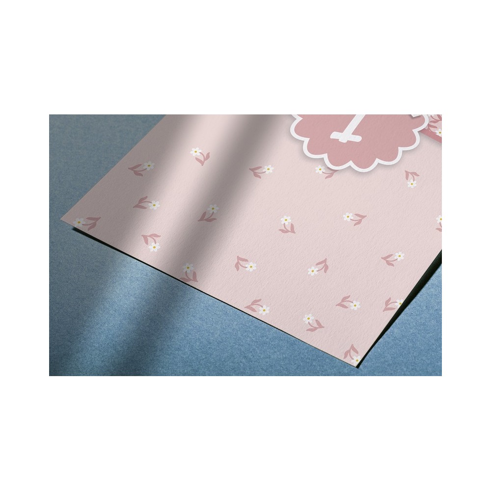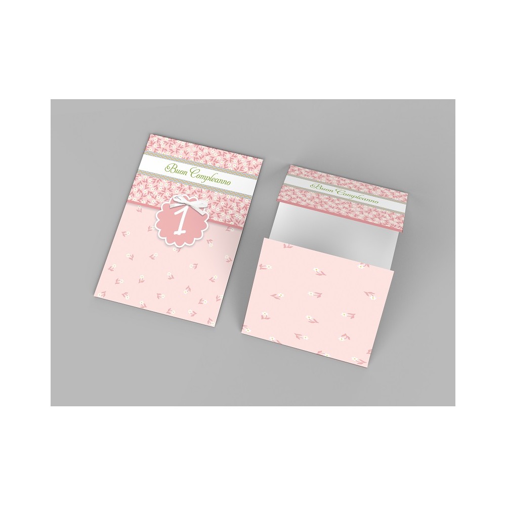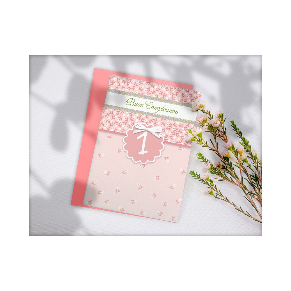 Biglietto "Primo Compleanno" 1 anno rosa con busta