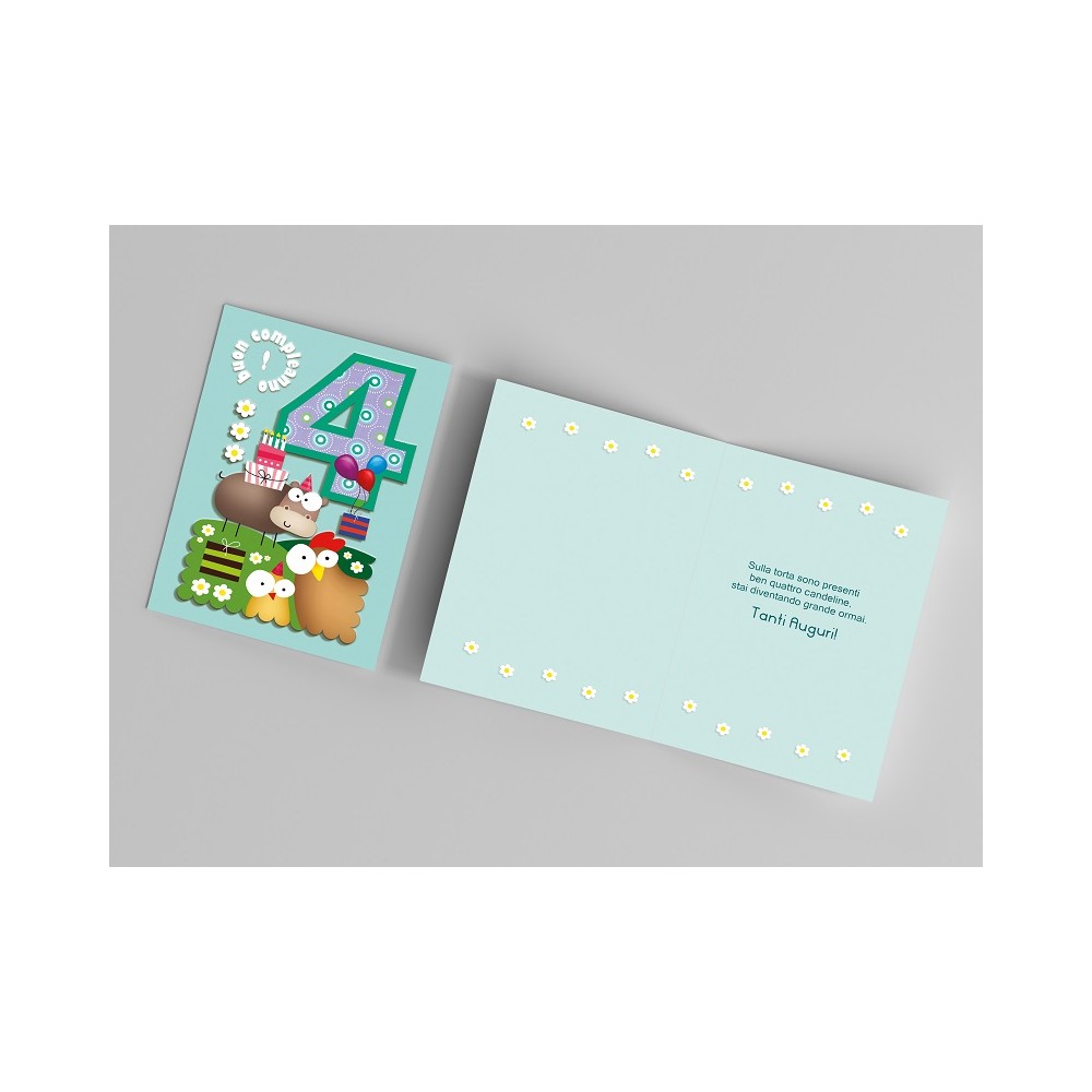 Biglietto "Quarto Compleanno" 4 anni con busta
