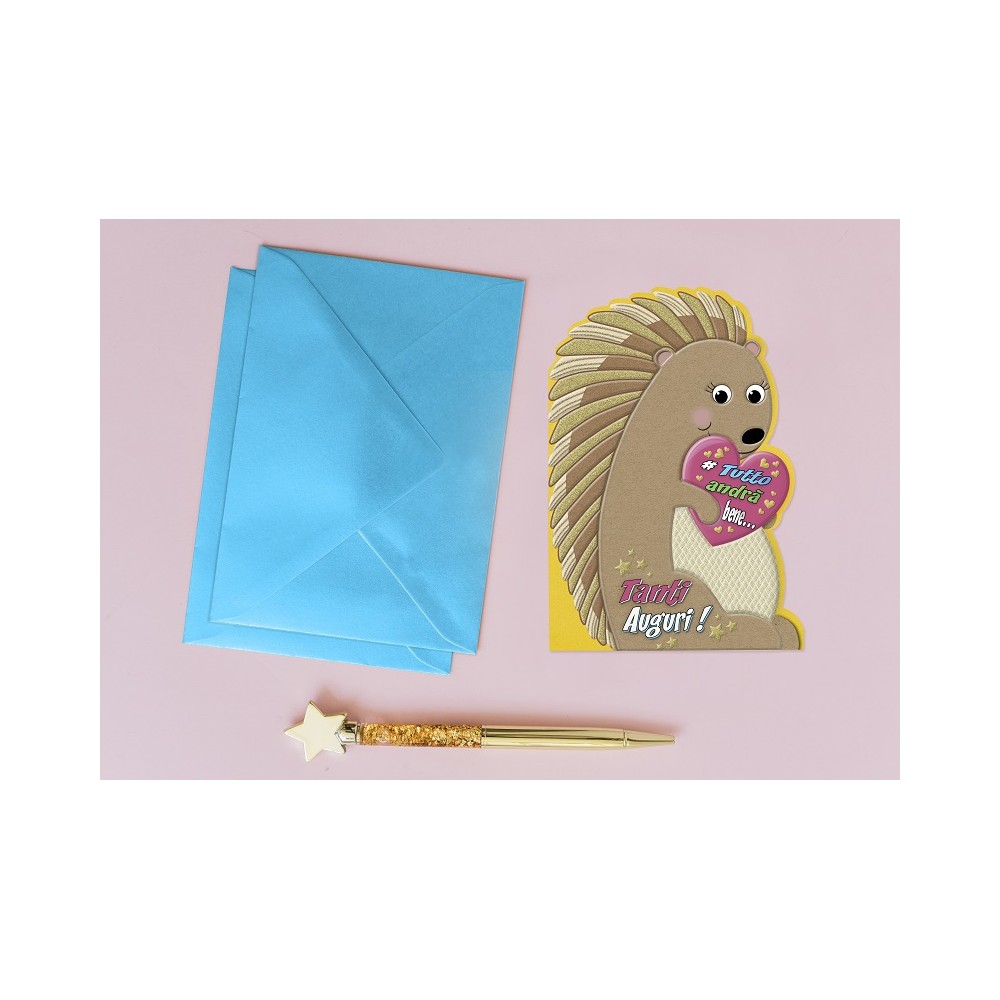 Biglietto "Tanti Auguri" con busta porcospino per bambini